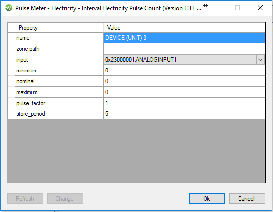 At the next screen, you must enter a device name and select the input number to which the pulse line is connected.