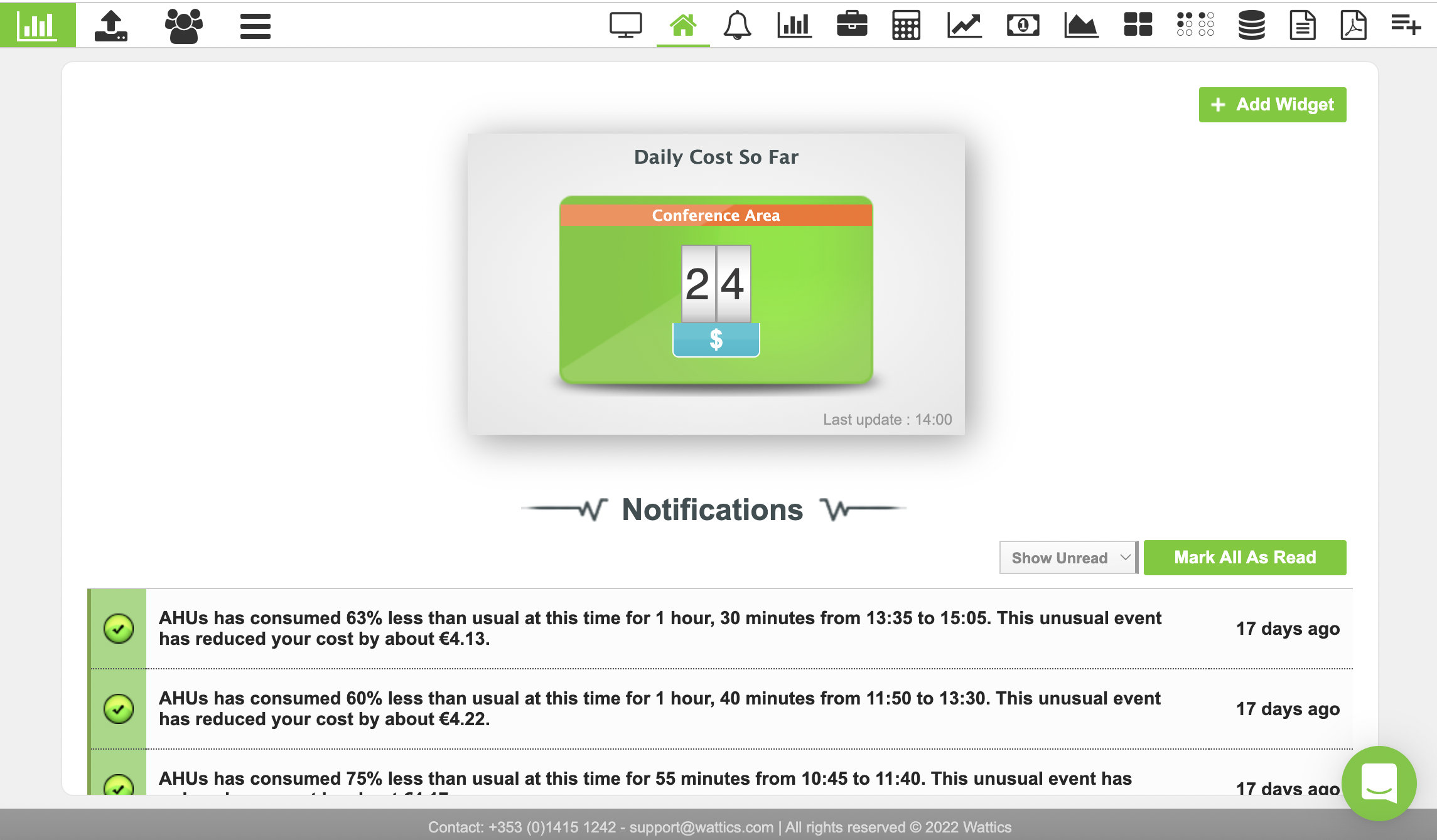 To create a new notification just click 'new alert' in the top right corner of the page and start to customise your alert. You can receive the notification in a number of different ways, including on your dashboard home page as seen in figure 4, via sms and via email. To learn how to set up sms notifications please follow to here.