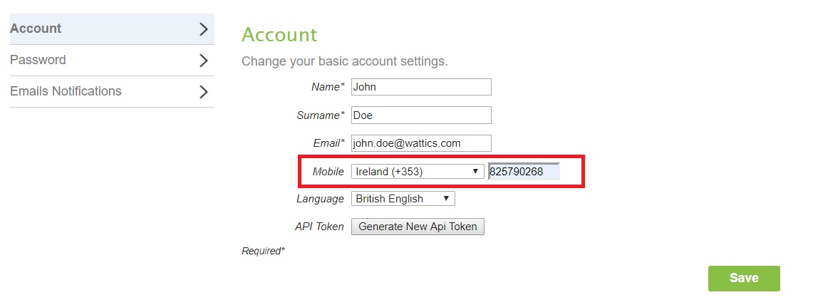 If you have not set your mobile number in your account, log in to your dashboard, and set your mobile under 'My Account'