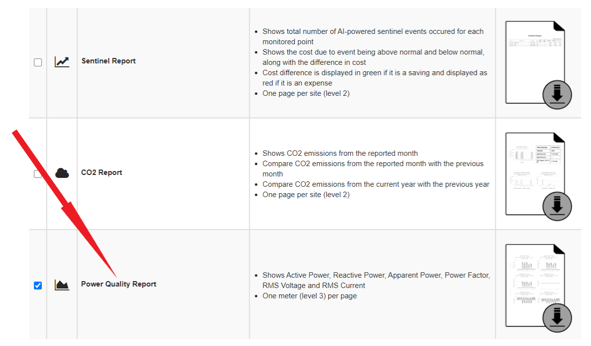 You can select the Power Quality Report by clicking here: