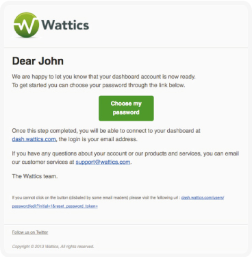 For new installations, we typically release dashboard access within 2 weeks after the metering system installation, to allow data to be collected and to show nice graphs to be shown when the user(s) first log in.
