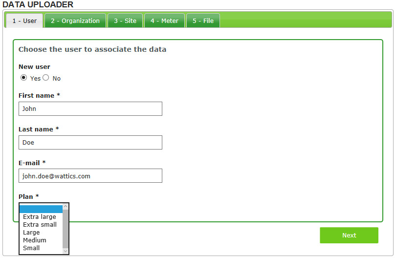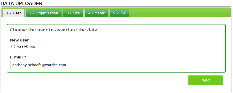 You must then fill in the details about where the data should be located in your dashboard. For that you will need to link the data to an existing organisation, site or meter, or create new ones.
