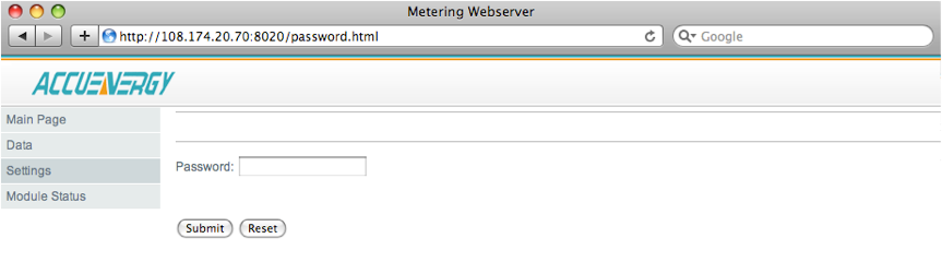 Access a PC or laptop connected to the same LAN as the meter, open an Internet browser window, type in the meter IP address in the URL bar and hit the Enter key. The meter’s web server page will be displayed.