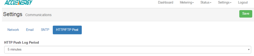 HTTP Push Log Period: Select 5 minutes.