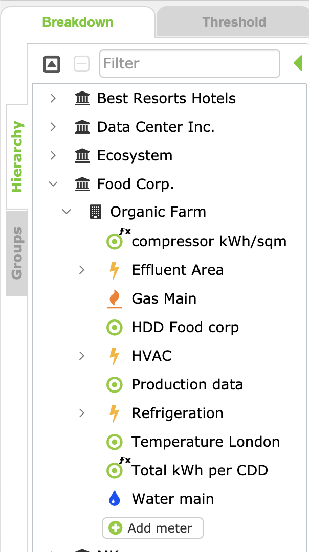 In AiElements, a datapoint is an entity registered on our database which holds data from a meter (electrical, gas, water, heat etc) or an IoT device, or sensor or utility bill or any other numeric metric such as production data or heating degree days.