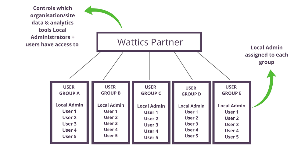 With the new Local Admin tool, Consulting Engineers Ltd, has the ability to create a user group for each department i.e. Measurement, Verification & Evaluation - assigning the department head for example as a local administrator, who has access to project data and AiElements analytics tools to carry out services for their customers.
