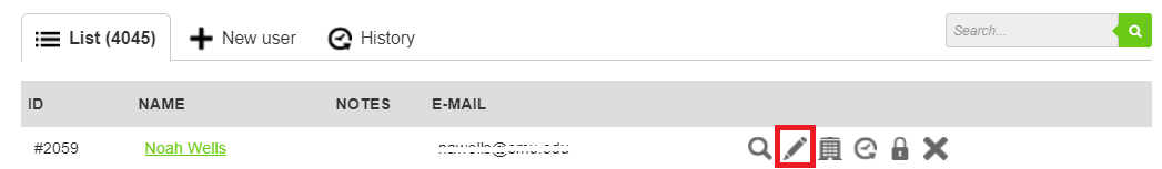 Step 5: To assign a local administrator, search for the relevant user, and click on the edit button, represented by the pencil icon: